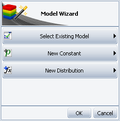 To create a new model from the wizard, click the New Constant or New Distribution button or icon.