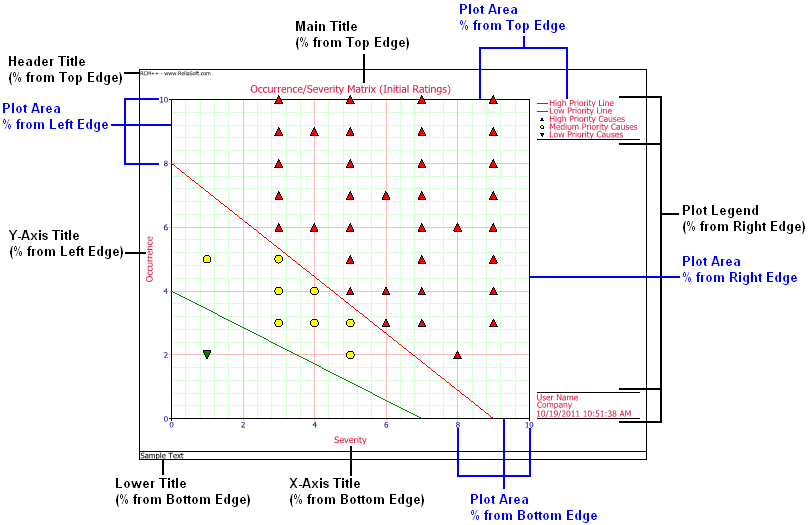 Automatically calculate positions from edges of plot sheet if selected, automatically calculates the offsets for maximum plot display and readability. If not selected, you can manually specify the offsets of the plot’s left, right, top and bottom edges; the offset of the legend from the right edge of the plot area; and the offset of the main, x-axis, y-axis, header and footer titles. The offset values are set as a percentage of the canvas area.