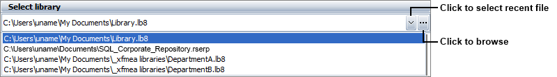 Use the drop-down list or browse button (...) to select the library that you want to import from. This can be a standard library file (*.lb8) or an enterprise database connection file (*.rserp).