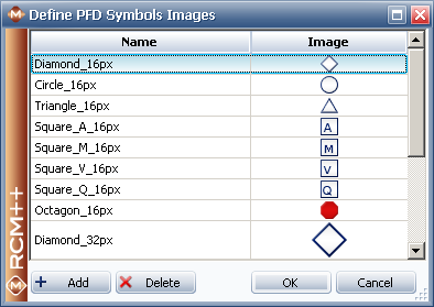 To customize the list of available images, click the PFD Symbols button at the bottom of the Modify Drop-Downs window. This opens the Define PFD Symbols Images window, as shown next.