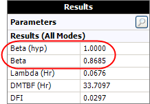 Beta = 1 hypothesis is invalid displays a message when the beta = 1 hypothesis fails. This warning applies only to the Crow Extended or Crow Extended - Continuous Evaluation models.