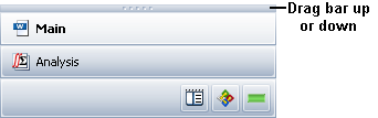 Many control panels and navigation panels contain multiple pages that vary depending on the type of analysis. You can switch between pages by clicking either the large buttons or the small icons at the bottom of the panel.