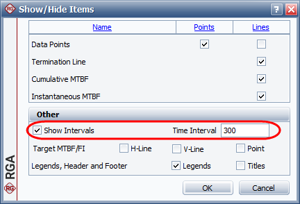 In the window, make sure that the Show Intervals check box is selected, and then specify the length of the interval in the Time Interval field, as shown next. Click OK and the plot will refresh to show the new results.