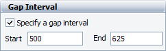 Return to the data sheet. On the Analysis page of the control panel, select the Specify a gap interval check box and then enter 500 to 625 for the gap interval, as shown next.