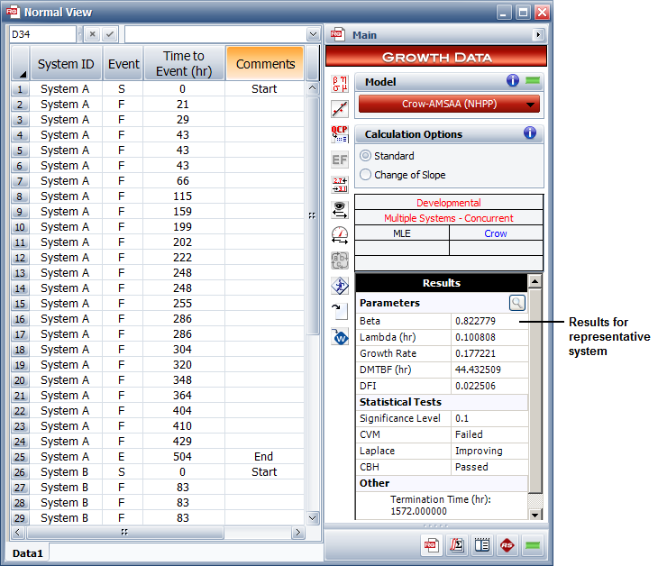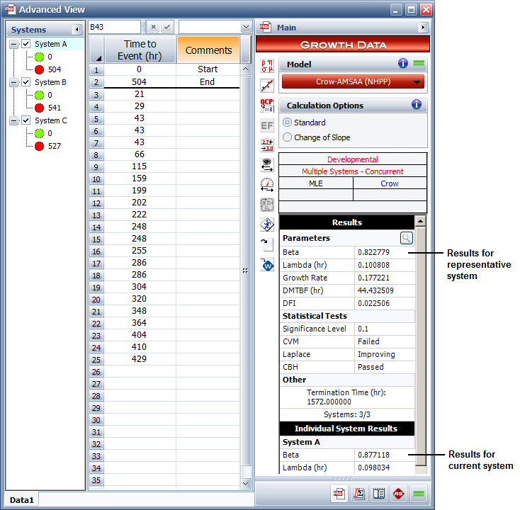 When you are analyzing data from multiple systems, RGA combines the data into a single representative system that allows you to evaluate all the failures that occurred during the observation period.