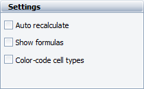 Color-code cell types displays color-coded borders around the cells. This option is also available from the Sheet Options window.