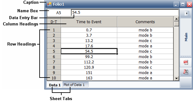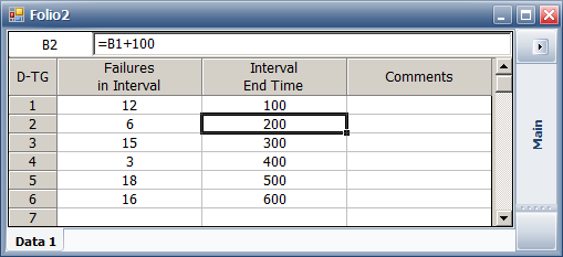 Analysis folios in Weibull++, ALTA, RGA and DOE++ are made up of data sheets. This topic describes the basic components of a data sheet and shows how you can resize the columns and rows, and enter formulas.
