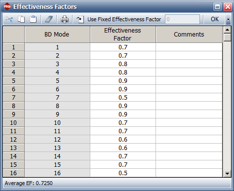 Enter the factors shown next. You can see that the average effectiveness factor for all the delayed fixes—displayed in the status bar—is 0.7250. Click OK to save the changes and close the window.