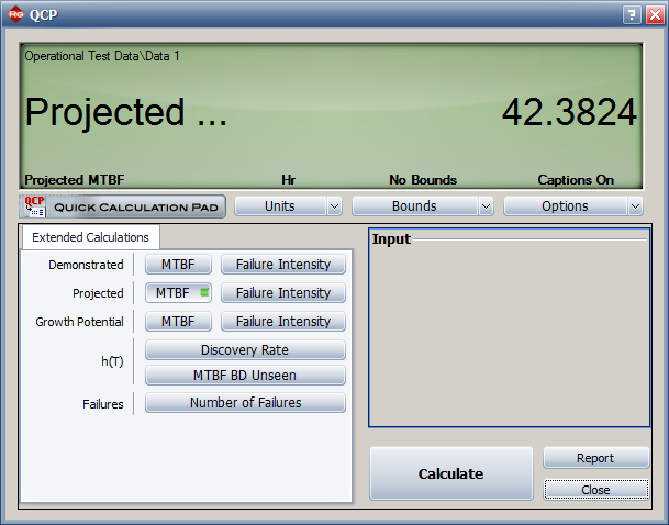 In the window that appears, select the MTBF option in the Projected area. After you click Calculate, the QCP will appear as shown next.