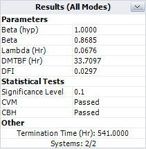 This result means the MTBF demonstrated at the end of the test (the DMTBF of 33.7097 shown on the control panel) is expected to increase to 42.3824 hours after all the BD modes have been fixed.