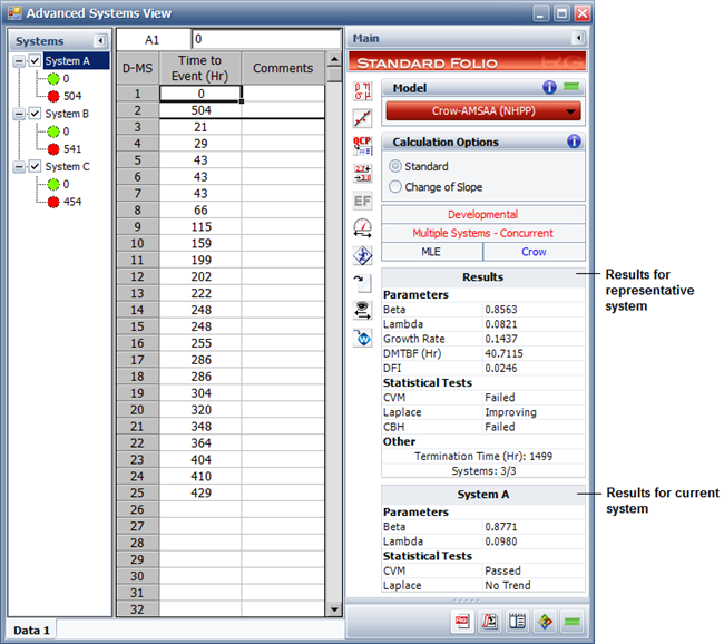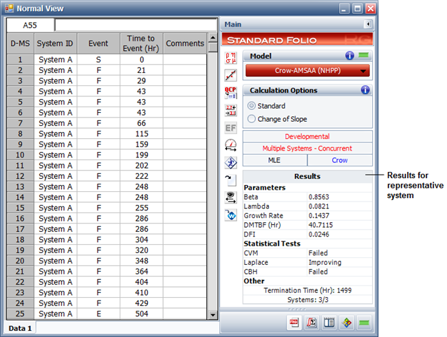 When you are analyzing data from multiple systems, RGA combines the data into a single representative system that allows you to evaluate all the failures that occurred during the observation period.