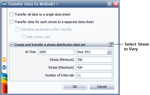 Transfer data for each stress to a separate data sheet groups the accelerated data set according to stress level and then places each group into its own data sheet in the new Weibull++ standard folio. In multiple-stress situations, a stress level is a combination of stress values. There are two additional options: