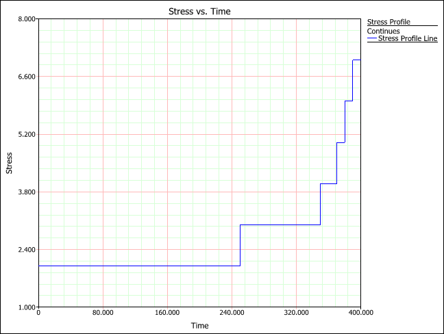 Select Continue with last stress on the control panel. Click the Validate Stress Profile icon to save and validate the information in your new profile. Finally, click the Plot icon to view a stress vs. time plot for your profile. It should appear as shown next.