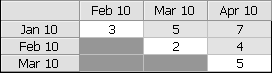 In the example shown here, there were 3 returns in February from the batch that was in-service in January. In March, 5 more units from the batch that was in-service in January were returned and 2 units from the batch that was in-service in February were also returned. The rest of the chart can be read in a similar manner.