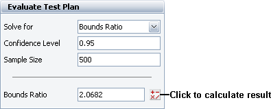 From the Solve for drop-down list in the control panel, choose the value you wish to solve for. The two input fields immediately below the drop-down list will change depending on what you choose. For example, if you choose Sample Size, the two input fields will be Confidence Level and Bounds Ratio.