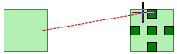 In both methods, the pointer will change to display small crosshairs. Click the source block, hold down the left mouse button and drag a line from the source block to the destination block. When the crosshairs are located over the connection point box, release the mouse button to create a connector.