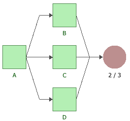 The following example shows a k-out-of-n configuration where Block B, Block C or Block D can fail without causing system failure, but if two of the blocks fail, the system will fail.