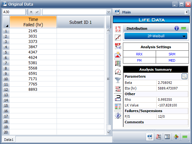 A product underwent a reliability test. The following picture shows the data set as it was entered in Weibull++.