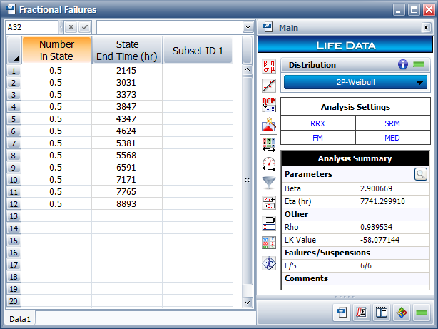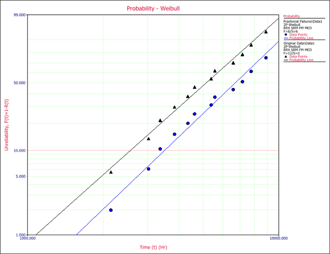 You can use fractional failure analysis in Weibull++ life data folios to account for the effectiveness of an assumed corrective action or product redesign in your analyses. For example, if the fix for a failure is expected to be 70% effective, you can enter the failure count as 0.3 (30%) in the data sheet. This allows you to analyze a product's reliability, B10 life or other metrics, assuming an implemented fix.