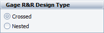 The Gage R&R Design Type area allows you to select which type of gage R&R design you will use.