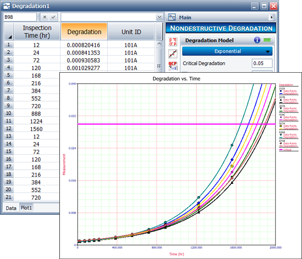 The Degradation folio extrapolates expected failure times based on how a performance measure (e.g., crack propagation, tread depth, vibration) has degraded over time.