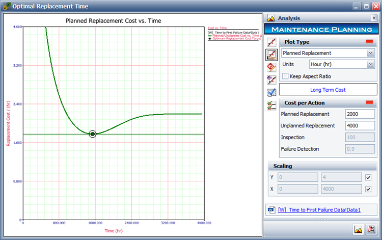 The Maintenance Planning folio uses the optimum replacement age model to determine the most cost-effective time to replace aged components.