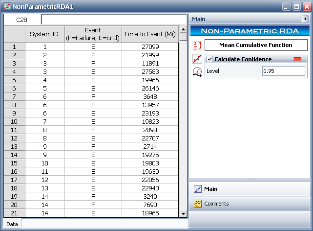 Select to calculate the confidence bounds, enter a confidence level of 0.95 and click Calculate.