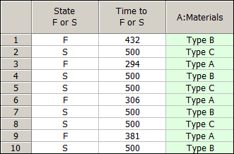 State F or S Column allows you to specify whether the unit is failed (F) or suspended (S). This column is available only for data with right censoring.