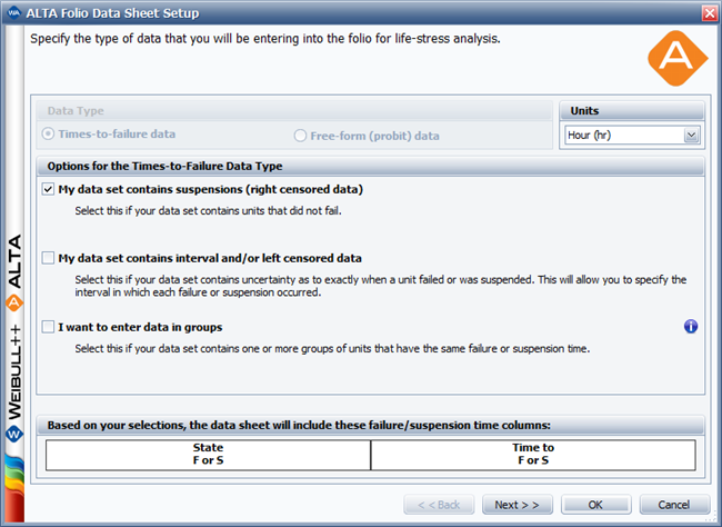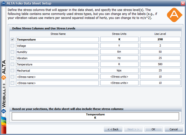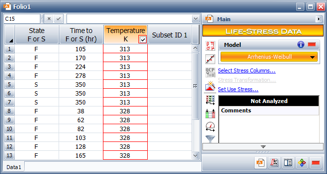 ALTA's life-stress data folio allows you to perform quantitative accelerated life testing data analysis. In this analysis, you extrapolate a product’s failure behavior at normal conditions from life data obtained at accelerated stress levels. Since products fail more quickly at accelerated stress levels, the analysis allows you to obtain reliability information about a product (e.g., mean life, probability of failure at a specific time, etc.) in a shorter time.