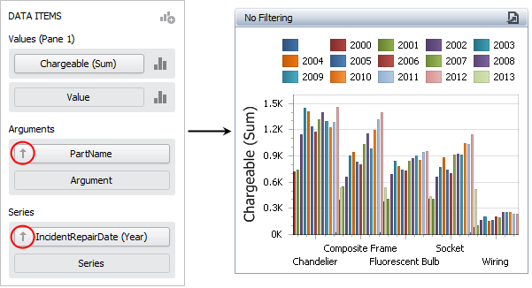 This type of filtering only applies to the dashboard item you have selected. To filter the data across the entire dashboard, see Configuring a Master Filter.