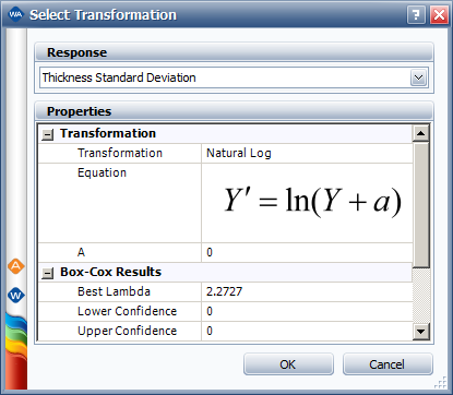 To transform the standard deviation values, choose Data > Design > Select Transformation, or click the icon on the Data tab's control panel.
