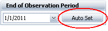 To automatically set the end date to the last day the warranty data were collected, click Auto Set, as shown next. This may be the latest date that appears on the Sales sheet or the latest date that appears on the Returns sheet, whichever is more recent.