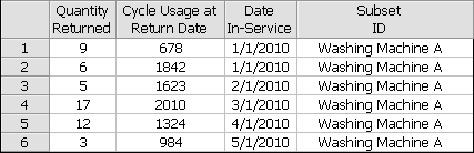 Note: For the column headings in this sheet, the general term in-service represents the closest estimate of the time at which each unit started operating in the field. For example, if you have access to both the manufacturing date and the shipping date for a group of parts, you may choose to perform the analysis based on the shipping date because it is a closer indicator of the time the product started operating in the field.