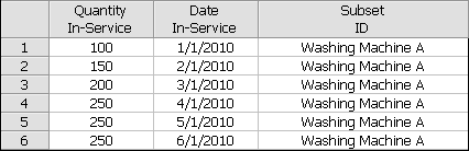 The Quantity In-Service column is for entering the number of units that are assumed to have started operating during each period.