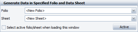 Generate Data in Specified Folio and Data Sheet allows you to choose where to put the simulated data. Click the Active button to select the folio and data sheet that were active when the utility was opened. If you want the utility to always select the active folio and data sheet, select the Select active folio/sheet when loading this window check box.
