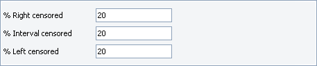 For example, the settings in following picture shows that the software will generate a set of data points, where 20% of the data are right censored, 20% are interval censored, 20% are left censored and the remaining 40% are complete data (i.e., exact failure times).