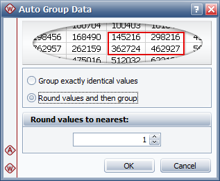 You can choose to group exactly identical values, or to first round the failure/suspension times to the nearest whole number or multiple of 10, and then group the identical data.