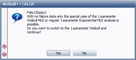 Since only suspension data has been entered, Weibull++ will only allow you to perform calculations involving the 1-parameter Weibull distribution with MLE or the 1-parameter exponential distribution with MLE.