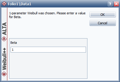 If you select the 1-parameter Weibull, you will then be prompted to enter the value of the known parameter.