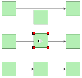 RBDs, PFS diagrams, Markov diagrams and RENO flowcharts allow you to insert a block into the flow of the diagram without having to delete and add connectors. Simply drag an unconnected block onto an existing connector. When the pointer changes to a double-headed arrow, drop the block to split the existing connector and insert the block.