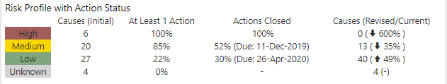 At Least 1 Action - the percentage of causes in each risk level with at least one assigned action.