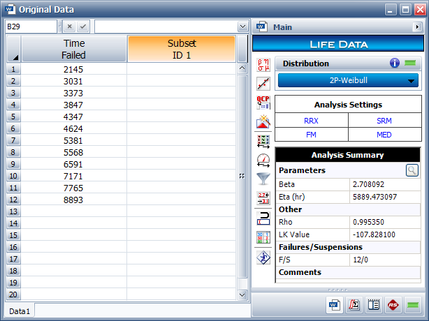 A product underwent a reliability test. The following picture shows the data set as it was entered in Weibull++.