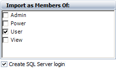 For secure databases only, use the Import as Members Of field to select the security group(s) that will be assigned to the new user account(s). If you skip this option now, you can assign security groups later for each individual account. (See Managing Security Groups.)