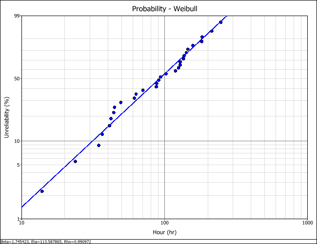 When the parameters have been calculated using rank regression analysis, the regression line is fitted to the data points on the plot in order to obtain the distribution parameters. Therefore, the plot can also be used to compare how different distributions fit a particular data set. The closer the regression line tracks the points on the plots, the better the fit.