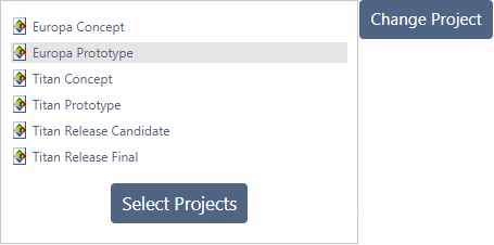 To add or remove projects from this list, click Select Projects. In the Select Projects popup window, the right side shows your list of projects and the left side shows all the projects that you have permission to view.