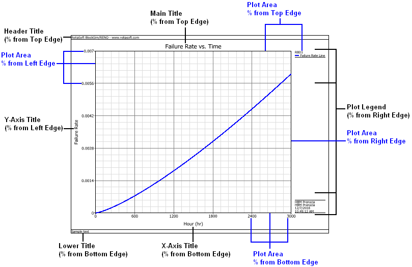 For your reference, the following picture shows which plot elements are affected by each of the offset settings. (Note that the plot is generated from BlockSim, but the settings are the same for all ReliaSoft desktop applications.)