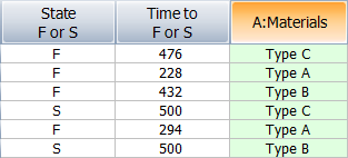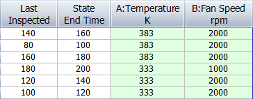 Life Data with Intervals: Interval censored data sets contain uncertainty as to when the units actually failed. For example, if five units under test are inspected every 100 hours, then the status of each unit (failed or still running) is known only at the time of each inspection. If a unit fails, it is known only that it failed between inspections and the exact time of failure is not known. Instead of an exact failure time, an interval of time (e.g., between 0 and 100 hours, or 100 and 200 hours) would be recorded. Interval data are shown next in the context of a factorial reliability design (e.g., the first data point indicates that a failure occurred at some time between 140 and 160 hours).
