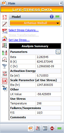 ALTA's life-stress data folio allows you to perform quantitative accelerated life testing data analysis. In this analysis, you extrapolate a product’s failure behavior at normal conditions from life data obtained at accelerated stress levels. Since products fail more quickly at accelerated stress levels, the analysis allows you to obtain reliability information about a product (e.g., mean life, probability of failure at a specific time, etc.) in a shorter time.