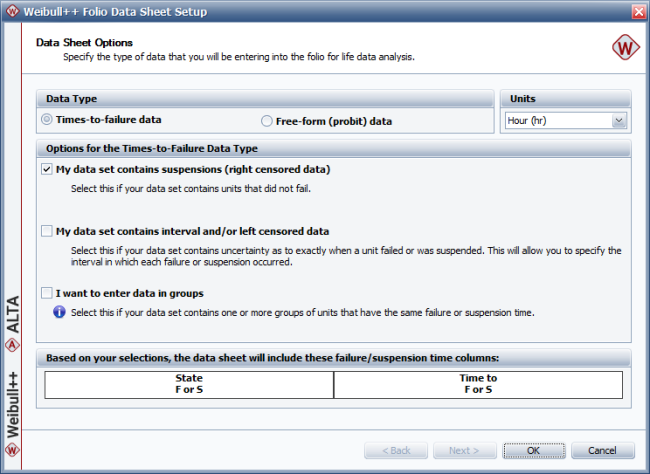 Weibull++'s life data folio allows you to fit a statistical distribution to failure time data in order to understand the reliability performance of a product over time or to make projections about future behavior. From the analysis, you can obtain reliability information about a product such as probability of failure, reliability, mean life or failure rate.