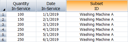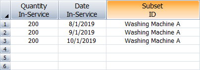 The Quantity In-Service column is for entering the number of units that are assumed to have started operating during each period.